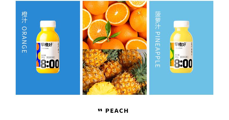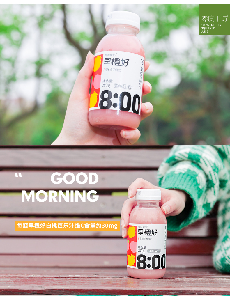 零度果坊早橙好 NFC果汁 白桃芭乐混合汁100%早餐果汁280g*8瓶装