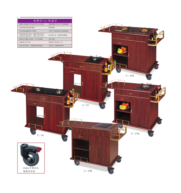酒店自助煮餐车 可定制双头煤气灶餐车 单头煮餐车 1270*500*910mm
